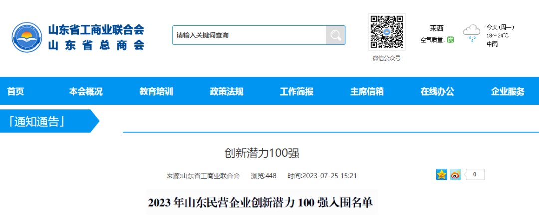 近日,2023年山東民營企業100強系列榜單發布會隆重召開,會議由山東省工商業聯合會、科學技術廳、工業和信息化廳、農業農村廳、人力資源和社會保障廳、商務廳、稅務局、市場監督管理局共同發起。經山東省工商業聯合會官網公示,銳智智能入圍2023年山東民營企業創新潛力100強!2023年青島民營企業創新潛力10強!